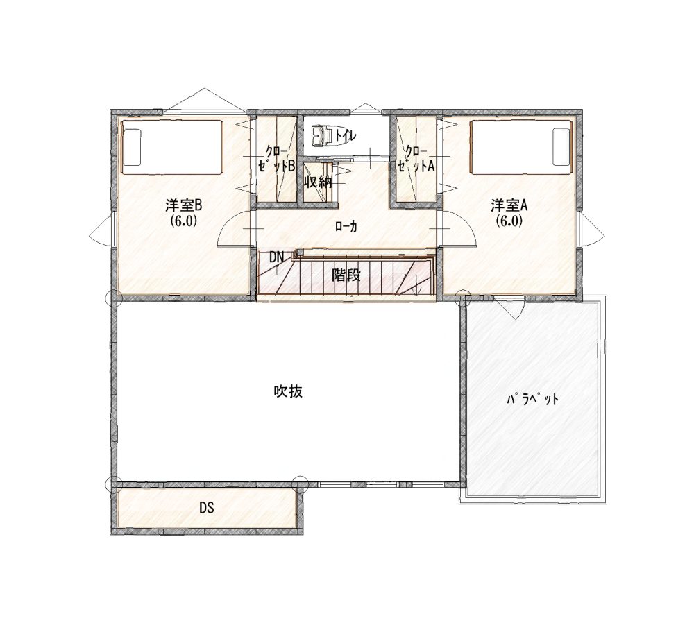 ナチュラルモダン風な吹き抜けで暮らす半平屋