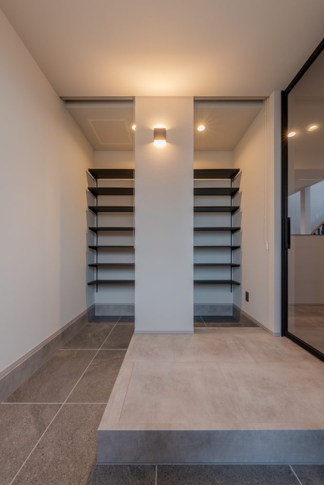 玄関にいながら、家族の気配やリビングの明るさを感じられる住まいです。