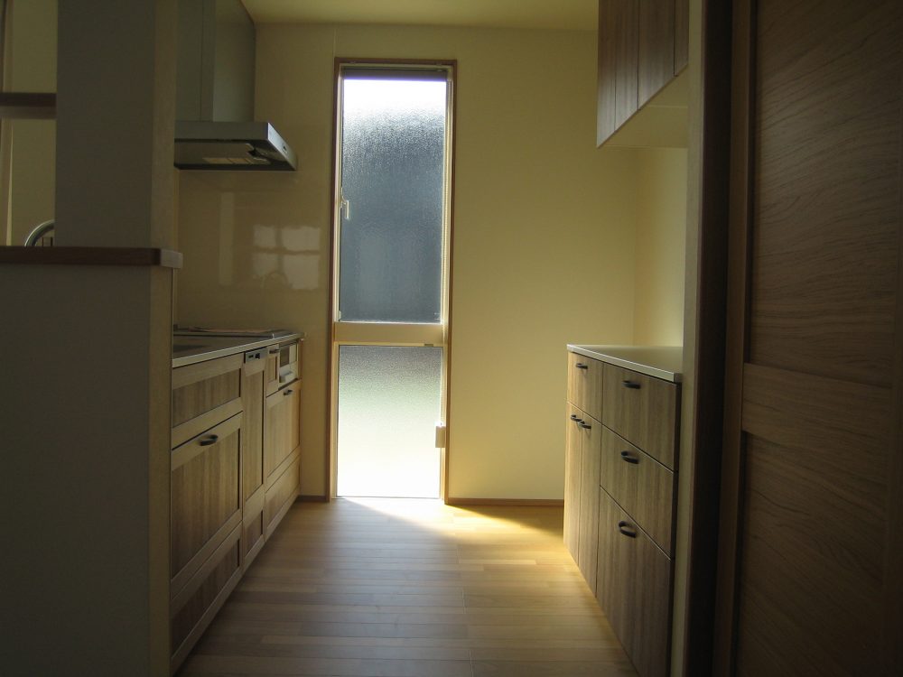 キッチンから背面収納まで115㎝ みんなで料理に最適です。