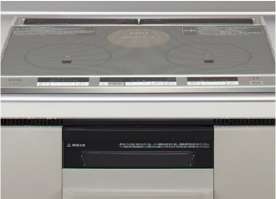 フライパンも大鍋もしっかり加熱。お手入れしやすい、広々2口IH+ラジエントヒーター仕様。