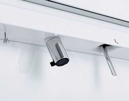 手をかざすだけで簡単に吐水・止水できる便利なハンズフリー水栓。あったら嬉しい機能が標準設備に。