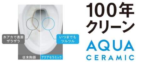 「アクアセラミック」従来の陶器ではできなかったガンコな水アカも汚物も落とせる、お掃除ラクラクな衛生陶器です。