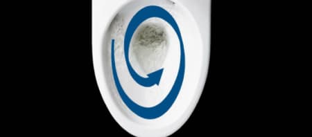 強力な水流が便器のすみずみまでまわり、少ない水でもしっかり汚れを洗い流します。