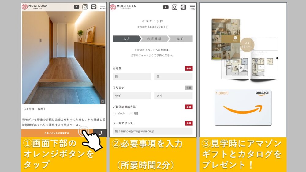 尚、このサイトから見学のご予約をしていただいた方には1,000円分のアマゾンギフトをプレゼントしております。