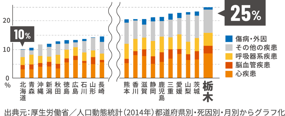- ワースト1は栃木県。増加率がもっとも少ないのは、寒冷な北海道。北海道は住宅の性能が高いことで知られています。