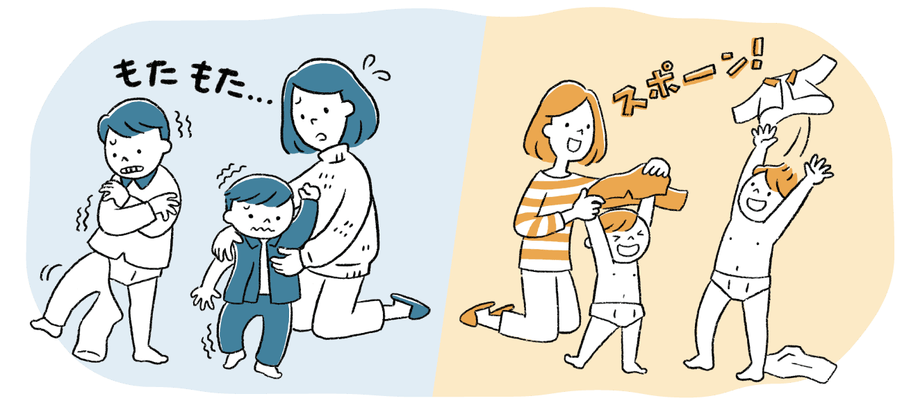 遅刻しちゃう… - やっとパジャマを脱がせたと思ったら、ひんやりした肌着にブルブル。