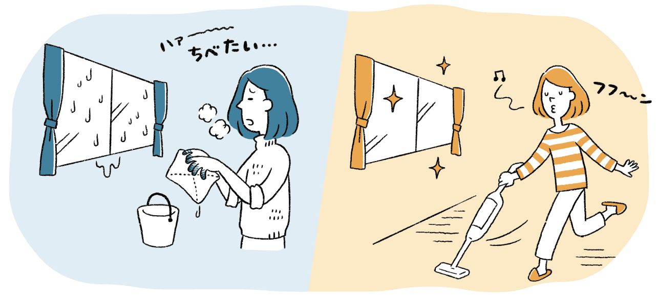 手がかじかむ… - 冬場のお風呂掃除や、朝の洗濯は辛い。窓の結露も追い打ちをかける。