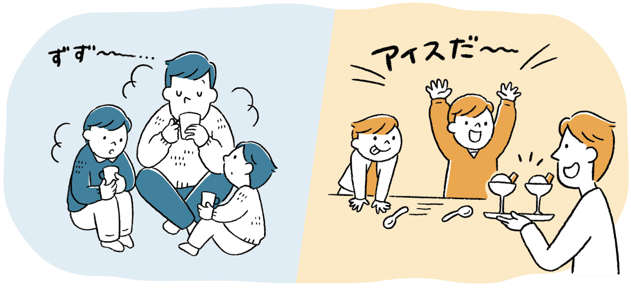 子どもたち大喜び - あったかいご飯のあとは、やっぱり冷たいデザートがほしくなる。
