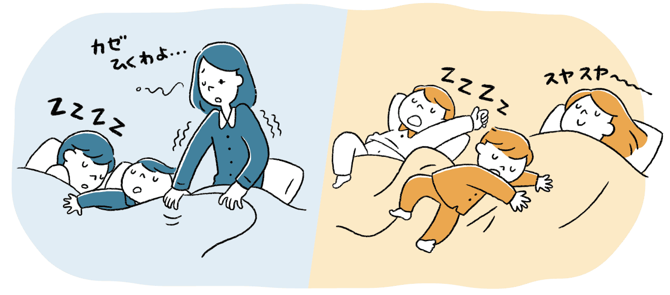 心配… - 真夜中に布団を蹴飛ばす我が子。