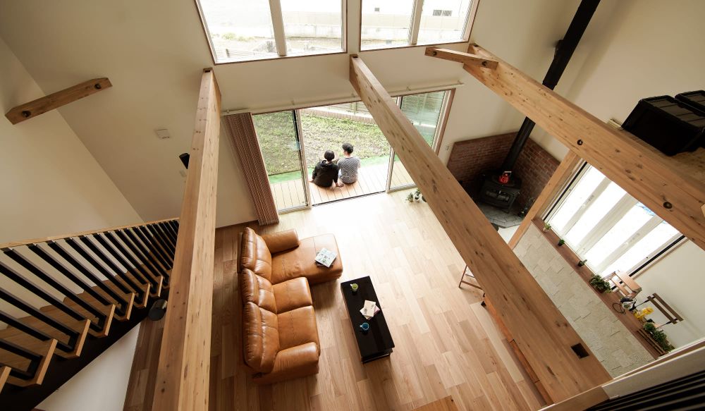 吹き抜けのリビングには、大きな窓から太陽の光が差し込みます。これからの暮らしのイメージを少しずつ、カタチに。