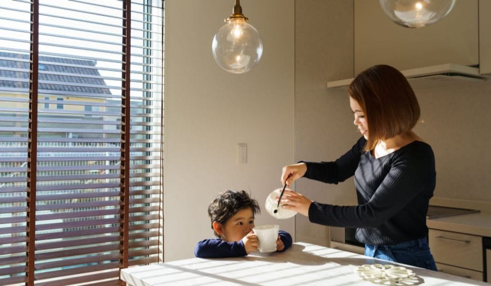 奥様はキッチンや収納、旦那様は外観の配色などを担当。一方、家族みんなで過ごすリビングやダイニングなどは、何度も相談を重ねて進めていきました。外からの視界を遮ったつくりもその1つです。