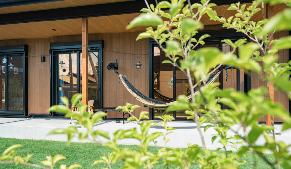 心地よい風と程よい光が入るベランダには、うたた寝のできるハンモックを。