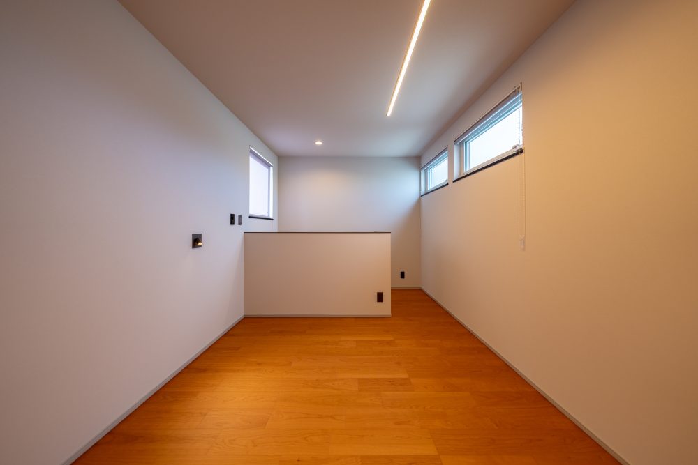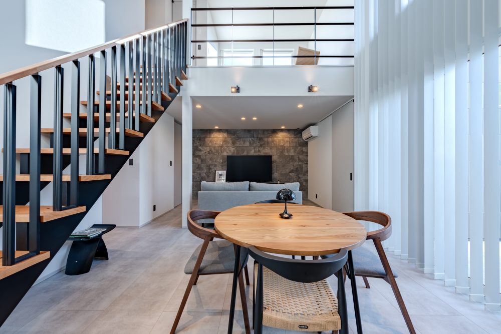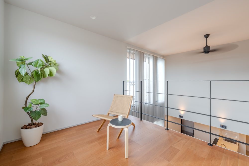薄い笠木や窓枠をなくすことで、空間のラインをよりシャープに。