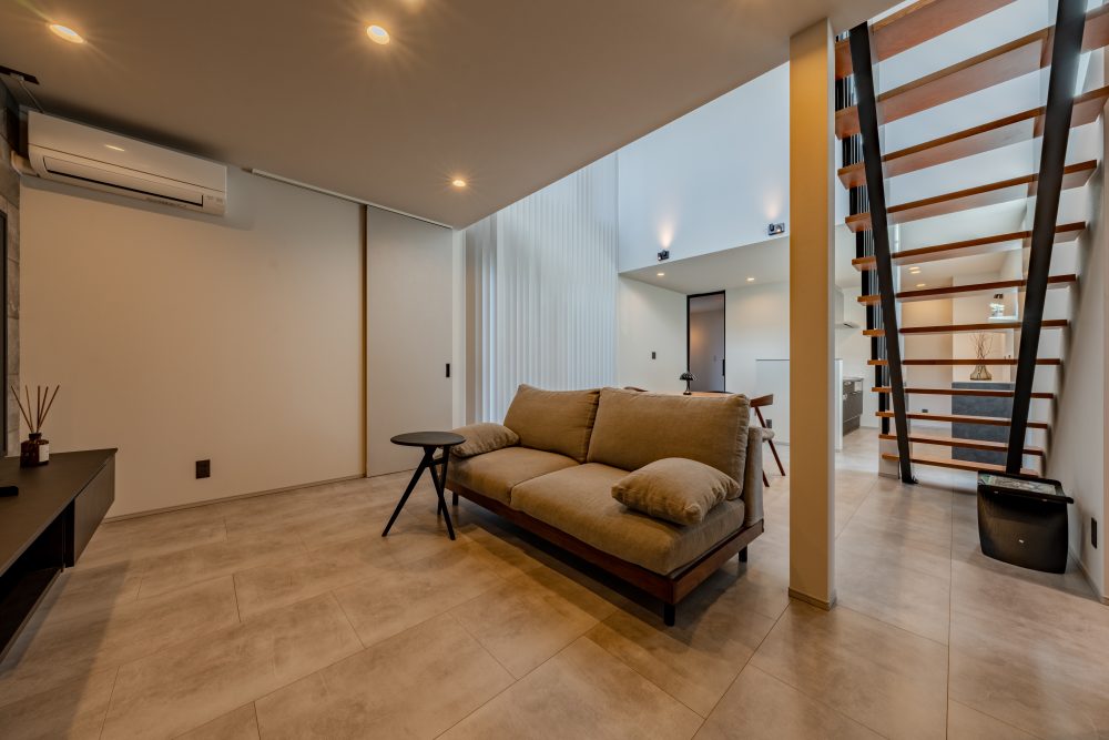 丁寧に整えられたインテリア、柔らかな照明、シンプルで洗練されたデザイン。