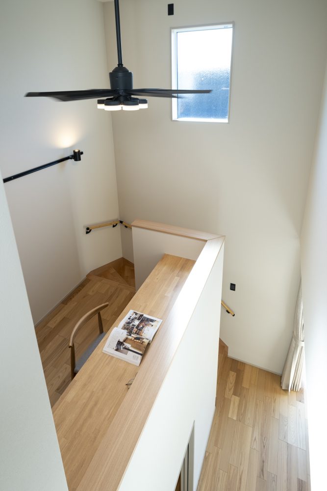 階段の途中に設けたスキップフロアは、1階のリビングと2階をつなぐ特別な空間です。