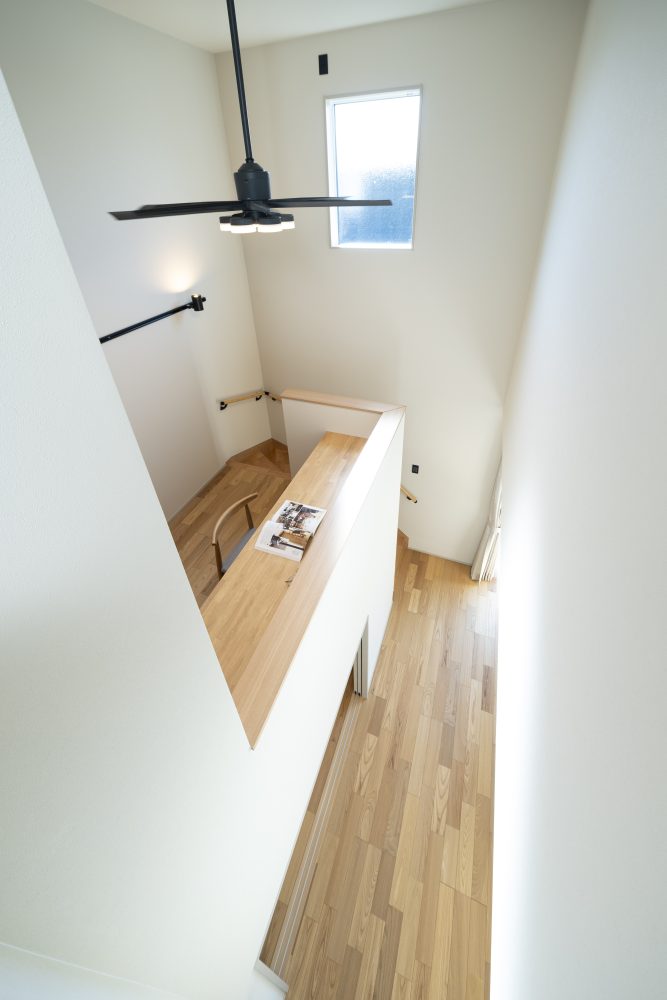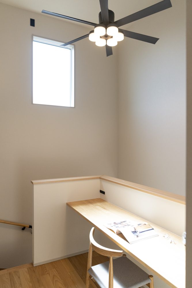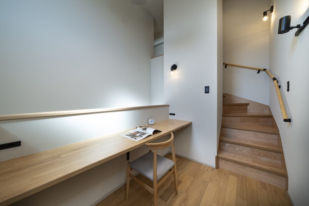 階段の途中に設けたスキップフロアは、1階のリビングと2階をつなぐ特別な空間です。