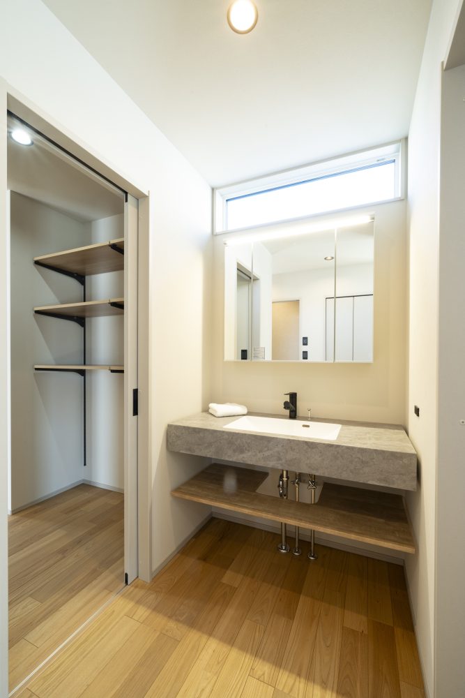 パントリー、洗面、ランドリーを繋げた裏動線が、家族の快適なルーティンをつくります。