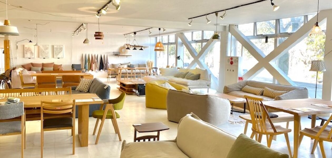 ⾃社⼯場を保有しており、商品開発から製造、販売までを⾃社で⼀貫して⾏うことで、質の⾼い家具をリーズナブルに提供する家具店。⽊⼯の町と呼ばれる⿅沼で、お客様が「⻑く使い続けたい」と思えるような家具を作り続けている。家具製作だけではなく、ライフスタイルに合わせたトータルコーディネートも行う。