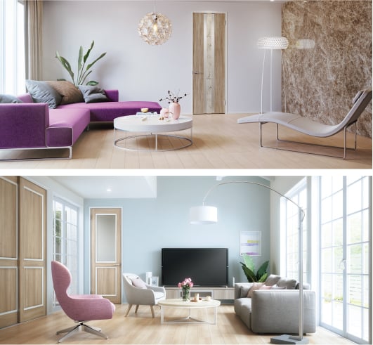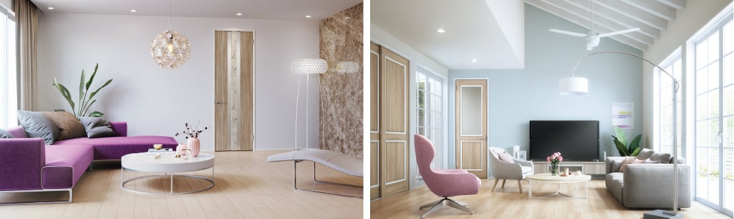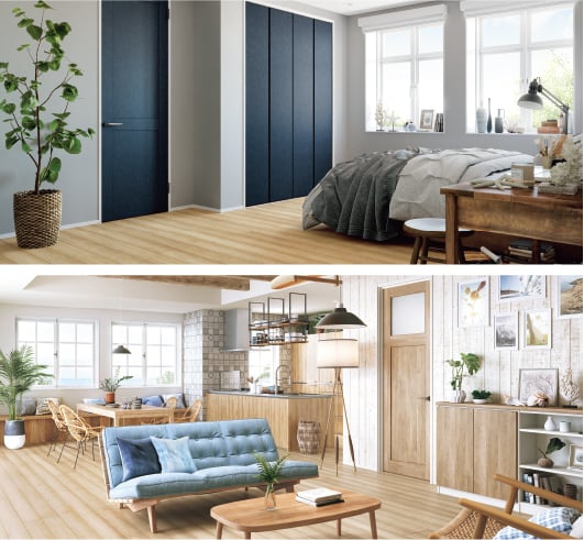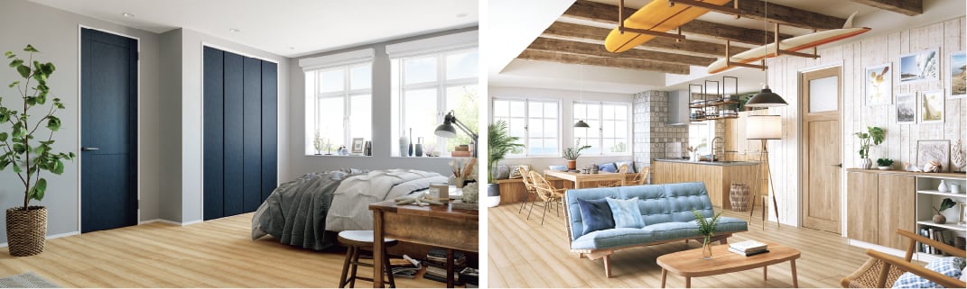 収納や居室の扉などに自分らしいスタイルを。新しいデザインやカラーが加わり、さらに表現の幅が広がりました。