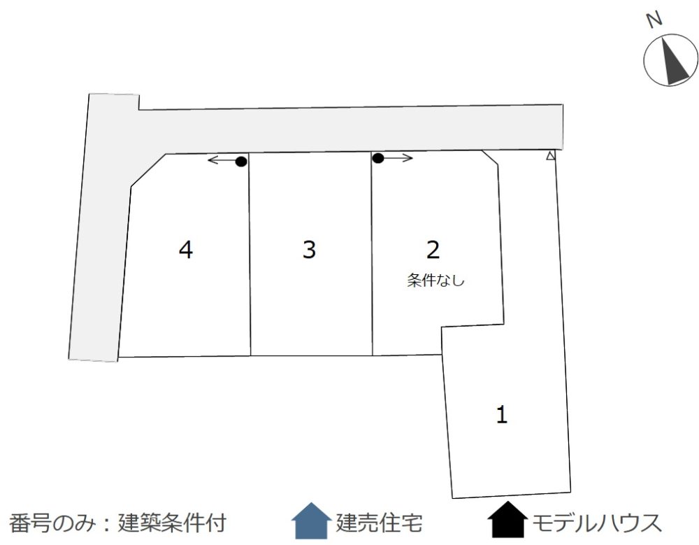 | その他 | ・北側私道は近隣所有者(3名)と共有です。 ・北側私道の隅切り部分は造成後分筆し、当分譲地所有者のみで共有持分となります。 ・造成完了前の為、造成完了後に土地面積や価格の変更がある場合がございます。 | ||